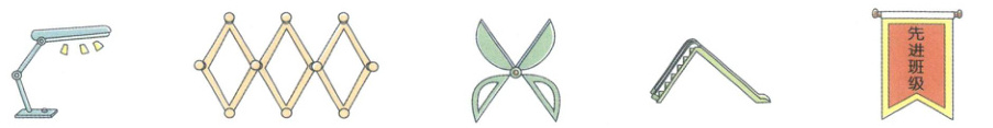 对于台灯,可在灯杆与底座连接处等位置找角并描出;对于菱形图案,可在菱形的顶点处找角并描出;对于剪刀,可在剪刀的交叉处找角并描出;对于梯子,可在梯子的横档与竖杆连接处等位置找角并描出;对于锦旗,可在锦旗的角的位置找角并描出。