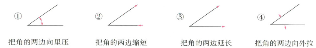 (3)通过上面的操作可以发现:角的大小与两条边的长短(