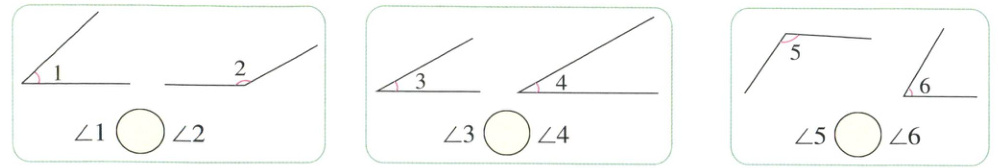 1 在 ○ 里填上“ > ”“ < ”或“ = ”。(可以用三角板比一比)