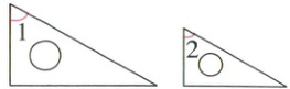 (2)用三角板比,$∠1$和$∠2$都是三角板上的特