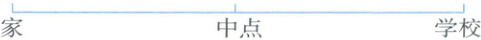 4 红红从家出发去学校,5分钟走了300米,再走150米就到中点。红红家到学校一共有多少米?(先画图,再解答)