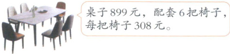 2 王叔叔购买了一套餐桌椅(如图),买椅子比买桌子多花多少钱?