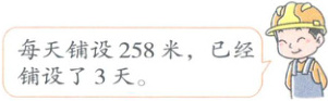 3 (教材P20第5题变情境)幸福小区附近的绿水路上有1000米的路段要进行暖气管道铺设,市热力公司计划4天完成管道铺设工作。第4天铺设多少米就能铺设完?