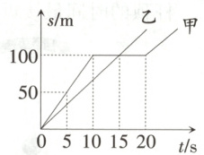 16. [合肥市改编](双选)如图所示,甲、乙两同学从同一地点同时向东出发做直线运动,他们通过的路程随时间变化的图像如图所示,由图像可知,下列说法中正确的是 (