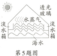 5. 跨学科实践 淡水资源缺乏已是一个世界性的普遍现象,利用太阳能、海水等资源获得淡水具有重要的战略意义。小明设计的太阳能海水淡化器如图所示,在海水淡化过程中发生的物态变化是