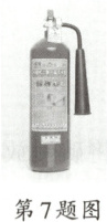 7. 安全意识情境 灭火器 在学校组织的消防演练中,消防员给同学们介绍了如图所示的二氧化碳灭火器的生产、使用及灭火原理。这种灭火器是在常温下用
