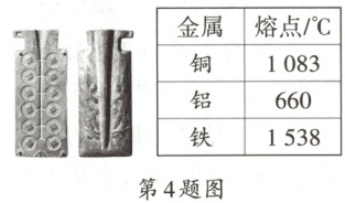(填物态变化名称)后即可得到金属钱币。各金属熔点见表,若想复刻铸造纯铜钱币,应选铁