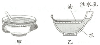 10. 古代科技情境 “省油灯” 图甲为我国古代的“省油灯”,图乙为其部分剖面示意图。向灯盏夹层内注水,有助于减慢油的蒸发,达到省油的目的。关于“省油灯”减慢油蒸发的方法,下列说法正确的是 (