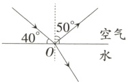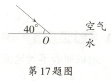 17. 如图,一束激光从空气斜射到水面(入射点O己标出),请画出反射光和折射光,并标出反射角的大小。