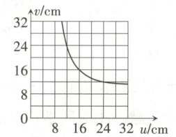 15. (双选) 某班同学在“探究凸透镜成像规律”的实验中,记录并绘制了像到凸透镜的距离 $v$ 跟物体到凸透镜的距离 $u$ 之间关系的图像,如图所示,下列判断正确的是 (
