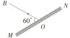 5. 请在图中画出反射光线$OB$所对应的入射光线,并标出入射角$i$及其大小。