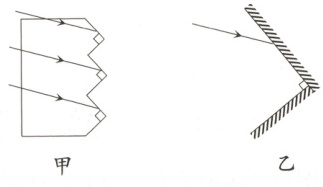 6.〔郑州市〕自行车尾灯的示意图如图甲所示。夜晚,用手电筒照射尾灯,看看它的反光效果。图乙可以帮助我们理解自行车尾灯的反光原理,请你在图乙中画出两次的反射光路。