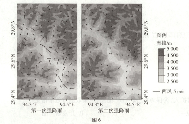 解题思路 观察两幅风向图的整体风向可知,第一次强降雨时图中风向整体呈现从谷底到谷坡的趋势,说明此时以谷风为主,应为白天;第二次强降雨时图中风向整体呈现从谷坡到谷底的趋势,说明此时以山风为主,应为夜晚。综上所述,D项正确。
