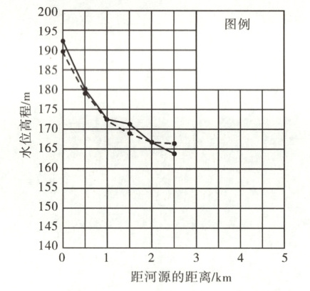 (1)请补充两条河流河源段的水位高程变化曲线和图例。(4分)