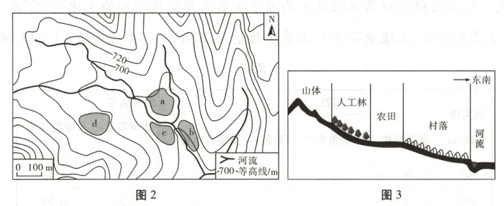 某地(图2)位于太行山南段东麓,该地山势险峻,多暴雨,易发山洪。为适应当地地理环境,该地形成了西北—东南向的“山—林—田—村—水”空间格局(图3),体现了当地居民的生存智慧。据此完成6—8题。