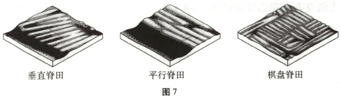 17. 参考答案(1)垂直脊田:利于将雨洪期积水快速排入河流,减少积水时间。平行脊田:减缓洪水速度,削弱洪水危害。棋盘脊田:减缓地表径流流速,蓄积雨水。
