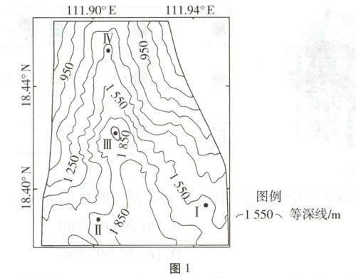 [2025·河北卷,8—9T,6 分]我国“深海勇士”号载人深潜器在西沙某海域海底考察时,发现一峡谷底部存在塑料垃圾。研究表明,这些塑料垃圾是被深海沉积物裹挟沿峡谷底部向下搬运而来的。图 1 为该峡谷等深线图。据此完成 1—2 题。
