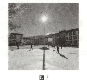 [2025·江苏卷,1—3T,6分]10月中旬,拉萨市(29°N,91°E)某中学学生开展校园地理实践活动。图3为北京时间13时56分拍摄的校园照片。据此完成8—10题。