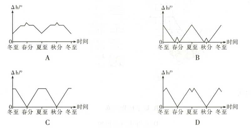 7. 两地正午太阳高度之差(Δh)年变化有可能的是 ()