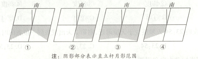 命题意图 本题考查日影方向与长度变化、太阳视运动、月相,意在考查考生获取和解读地理信息、调动和运用地理知识的能力。