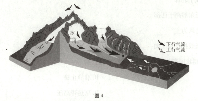[2024·广东卷,13—14T,6分]图4为珠穆朗玛峰南坡某冰川区暖季上、下行气流运动状况。据此完成9—10题。