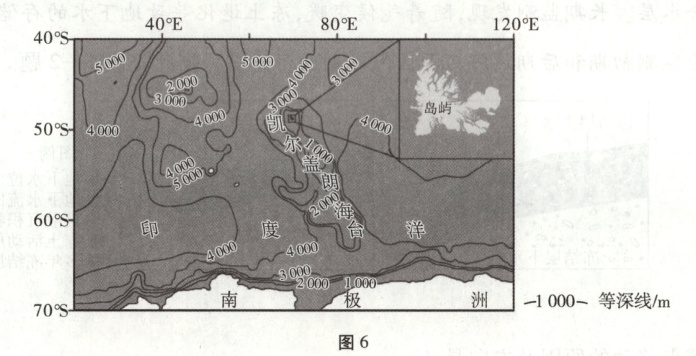 (2)解释凯尔盖朗海台东侧海域叶绿素水平显著高于周边其他海域的原因。(6分)