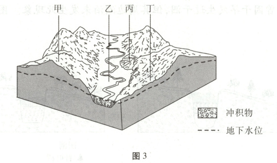 解题思路 流域整体发生构造抬升,河床下切,河漫滩面相对抬升到不被洪水淹没的高度时,就成为河流阶地面。阶地地表排水顺畅,地表组成物质是冲积物,透水性较好,水位适宜,地面相对高亢而稳定。河漫滩草甸即会最快演替为地带性植被——落叶阔叶林。故A项正确。