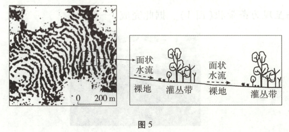 (1)说明非常平缓的坡面有利于灌丛带发育的原因。(4 分)