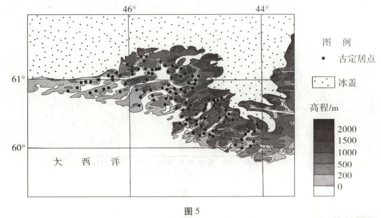 (2)分析区域气候变冷对图示区域的维京人古定居区的影响。(10分)