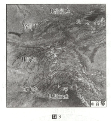 [2025·江苏卷,15—16T,4分]亚洲中部高大山脉周边分布着许多国家的首都。图3为亚洲局部地区卫星影像图。据此回答6—7题。