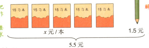 根据图中信息,5本练习本的价格加上1.5元等于5.5元,可以列出方程: