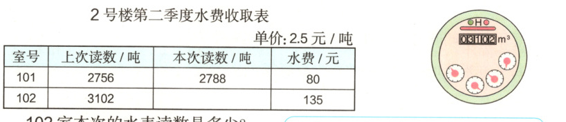 $102$室本次的水表读数是多少?