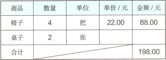 7. 一张购物小票的一角看不清了,你能算出桌子的单价吗?