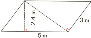 ◎典例 一块菜地的形状是平行四边形,如下图。它的一条边上的高是2.4m,另一条边上的高是多少米?