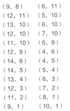 提示:数对中的第一个数是横着数(第几列),第二个数是竖着数(第几行)。例如(9,8)就是第9列第8行的小格子。