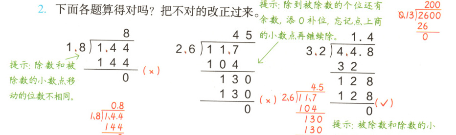 $1.8\overset{ }{\overline{)1.44}} = 0.8$(错误);