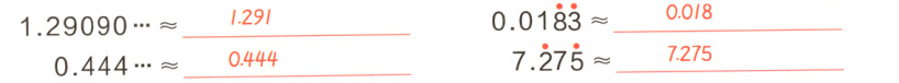 7. 写出下面各循环小数的近似数(保留三位小数)。