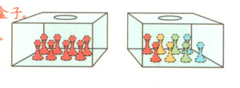 2 小组活动:在右面这样的盒子里轮流摸棋子,每次摸出一个,记录下它的颜色,再放回去摇匀,重复20次。