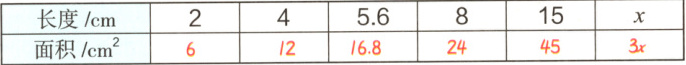 | 面积/$cm^2$ | 6 | 12 | 16.8 | 24 | 45 | $3x$ |
