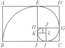 8. 斐波那契螺线又叫黄金螺线,广泛应用于绘画、建筑等,这种螺线可以按下列方法画出:如图,在黄金矩形 $ABCD \left( \dfrac{AB}{BC} = \dfrac{\sqrt{5} - 1}{2} \right)$ 中作正方形 $ABFE$,以 $F$ 为圆心,$AB$ 长为半径作 $\overset{\frown}{BE}$;然后在矩形 $CDEF$ 中作正方形 $DEHG$,以 $H$ 为圆心,$DE$ 长为半径作 $\overset{\frown}{EG}$;$·s$;如此继续下去,这些圆弧就连成了斐波那契螺线. 记 $\overset{\frown}{BE}$,$\overset{\frown}{EG}$,$\overset{\frown}{GI}$ 的长度分别为 $l$,$m$,$n$,对于以下四个命题:① $l = m + n$;② $m^{2} = ln$;③ $2m = l + n$;④ $\dfrac{2}{m} = \dfrac{1}{l} + \dfrac{1}{n}$,其中正确的是(
