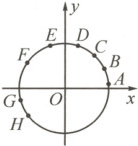 8. 在平面直角坐标系中,$\overset{\frown }{AB}$,$\overset{\frown }{CD}$,$\overset{\frown }{EF}$,$\overset{\frown }{GH}$是圆$x^{2} + y^{2} = 1$上的四段弧(如图),点$P$在其中一段上,角$\alpha$以$Ox$为始边,$OP$为终边。若$\tan \alpha < \cos \alpha < \sin \alpha$,则点$P$所在的圆弧是(
