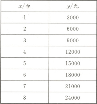 (3)解析式为$y = 3000x(1\leqslant x\leqslant 8,x\in N^{*})$。