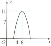 8. 解析:设二次函数$y = a(x - 6)^{2}+11$,又图象过点$(4,7)$,所以a = - 1,即$y = -(x - 6)^{2}+11$。