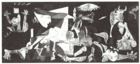 15. (艺术)右图为世界名画《格尔尼卡》,表现了法西斯战争带给人类的巨大苦难。这幅画的作者是西班牙画家(