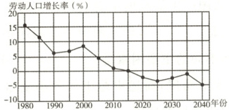 劳动人口是一个国家或地区全部人口中具有劳动能力的人口,在我国一般统计16~59岁的人口。下图示意我国1980年至2040年劳动人口增长率变化情况(含预测)。据此完成3~4题。