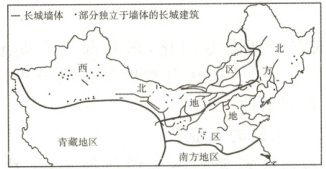 长城是我国现存规模最大的文化遗产。下图为我国长城分布示意图。读图,完成12~14题。