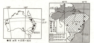 22. 关于澳大利亚和巴西的共同特征,下列叙述正确的是(