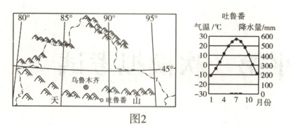 材料二 图 1 为京新高速沿线示意图,图 2 为吐鲁