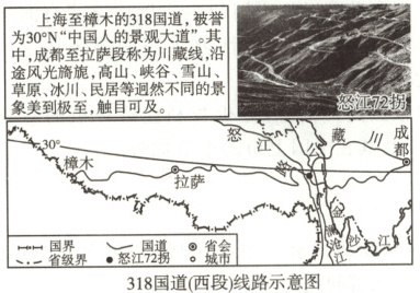 318国道是“西藏自驾游”热门旅游线路。读图,完成12~13题。