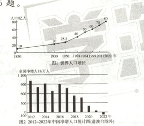 2022年11月15日为世界80亿人口日。与2021年相比,2022年中国人口总数减少了85万。读图,完成3~5题。